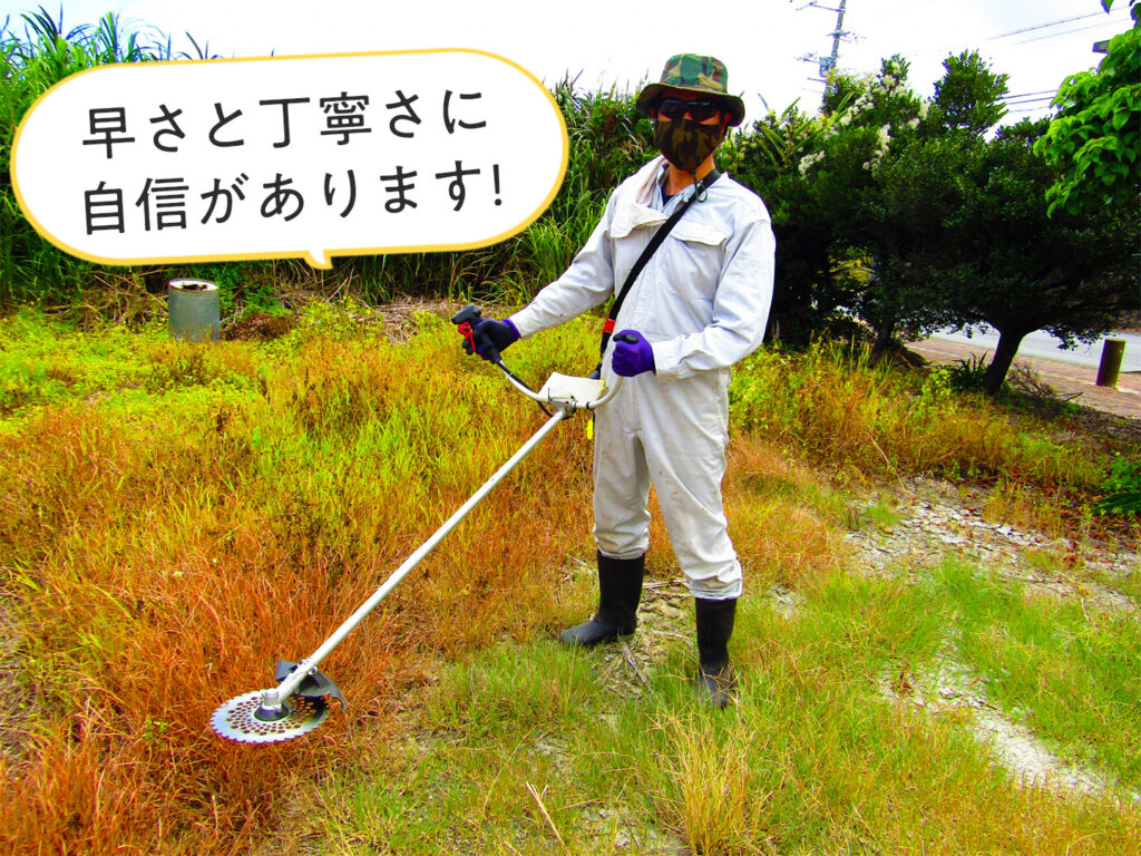 腰を痛めて自分で草刈りするのが難しくお願いしました。暑い中でも手際よく作業してくださり、見違えるほどでした。ご近所への配慮も行き届いており頼んでよかったです。
